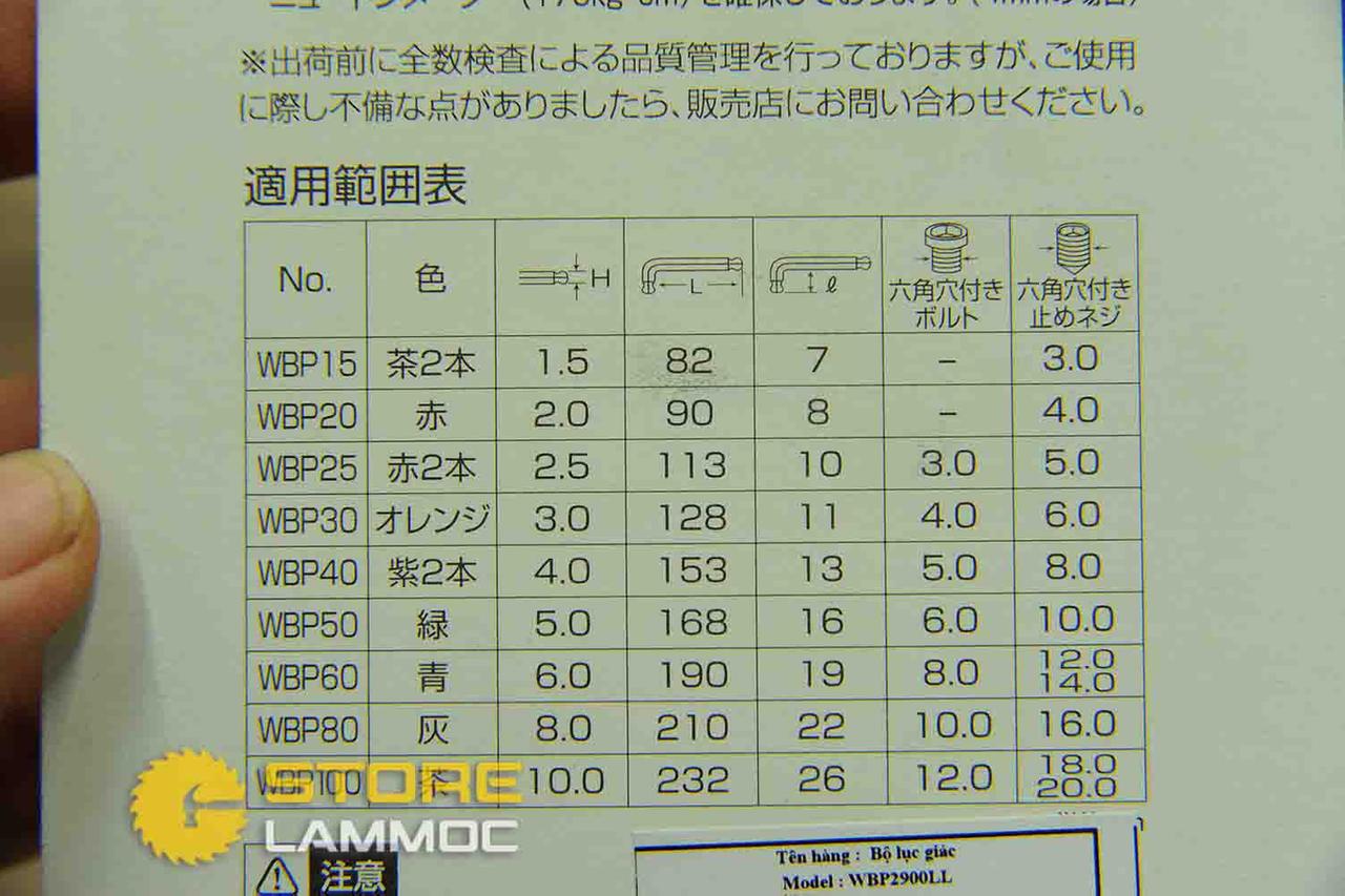 - Bộ gồm 9 cây lục giác với kích thước từ 1,5mm đến 10mm.