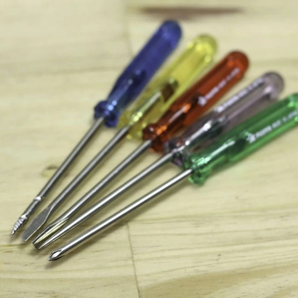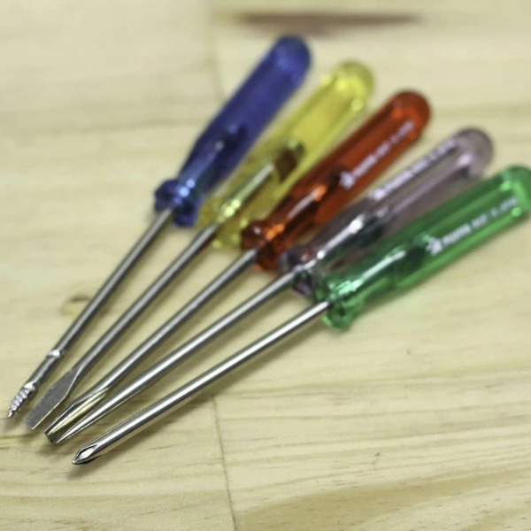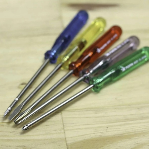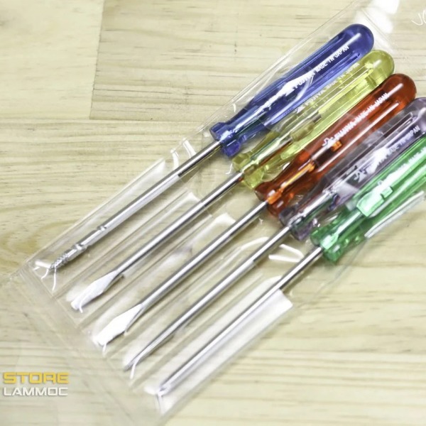 Bộ 5 tuốt nơ vít với quy cách đầy đủ: (-)4.0, 3.0mm ; (+) #0; 1 đầu nhọn, 1 đầu xoắn.