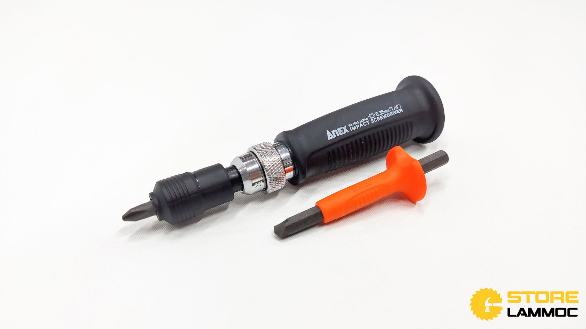 Bộ Tô vít đóng 1/4" ANEX No. 1903-N là sản phẩm chất lượng cao từ thương hiệu Anex của Nhật Bản. Bộ sản phẩm bao gồm tay cầm, mũi vít (+)2 thân lục giác 6.35mm dài 30mm, mũi vít tháo vít gỉ M3~M6 (AK-22N) và đầu chuyển từ 1/4″ sang lục giác 6.35mm.