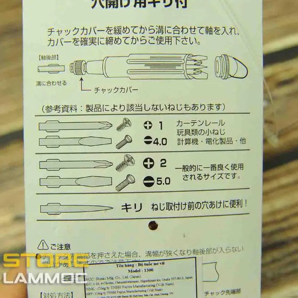 Có 5 đầu vít với kích thước khác nhau (-5.0 / -3.0 / + 2 / + 1 / đầu khoan) để phù hợp với nhiều loại vít khác nhau.