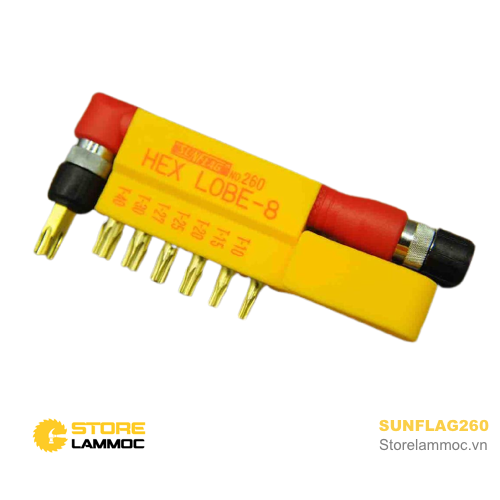 SUNFLAG Tuốc nơ vít dạng sao 260 là một công cụ cầm tay đa năng, được làm bằng chất liệu thép hợp kim được xử lý nhiệt và được mạ vàng. Với 7 đầu vít khác nhau, SUNFLAG Tuốc nơ vít dạng sao 260 giúp bạn dễ dàng thực hiện các công việc sửa chữa, lắp ráp và tháo dỡ một cách nhanh chóng và chính xác.