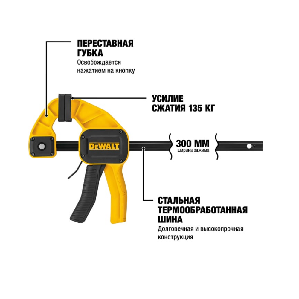 Cảo kẹp nhanh Dewalt DWHT0-83193 là sản phẩm cần thiết cho ngành làm mộc với thiết kế cò bóp nhanh, độ mở tối đa 300mm và lực kẹp tối đa 135kg.