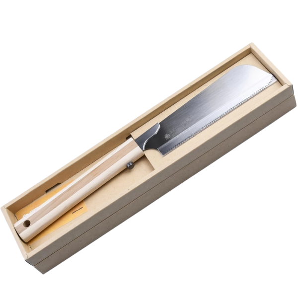Cưa Gyokucho Nhật Bản, loại cưa kéo chuyển động kéo, dùng cho công việc mộc và chính xác. Lưỡi mỏng 0.5mm tạo vết cắt sạch không gờ, đường cong cuối lưỡi cho phép cắt trên bề mặt phẳng.