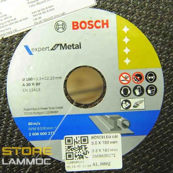 BOSCH Đá cắt 3.0 X 180 mm 2608600272 là một sản phẩm đá cắt chất lượng cao, có đường kính ngoài là 180mm, đường kính trong là 22.2mm và độ dày là 3mm. Đây là sản phẩm hoàn hảo để cắt sắt một cách nhanh chóng và hiệu quả.