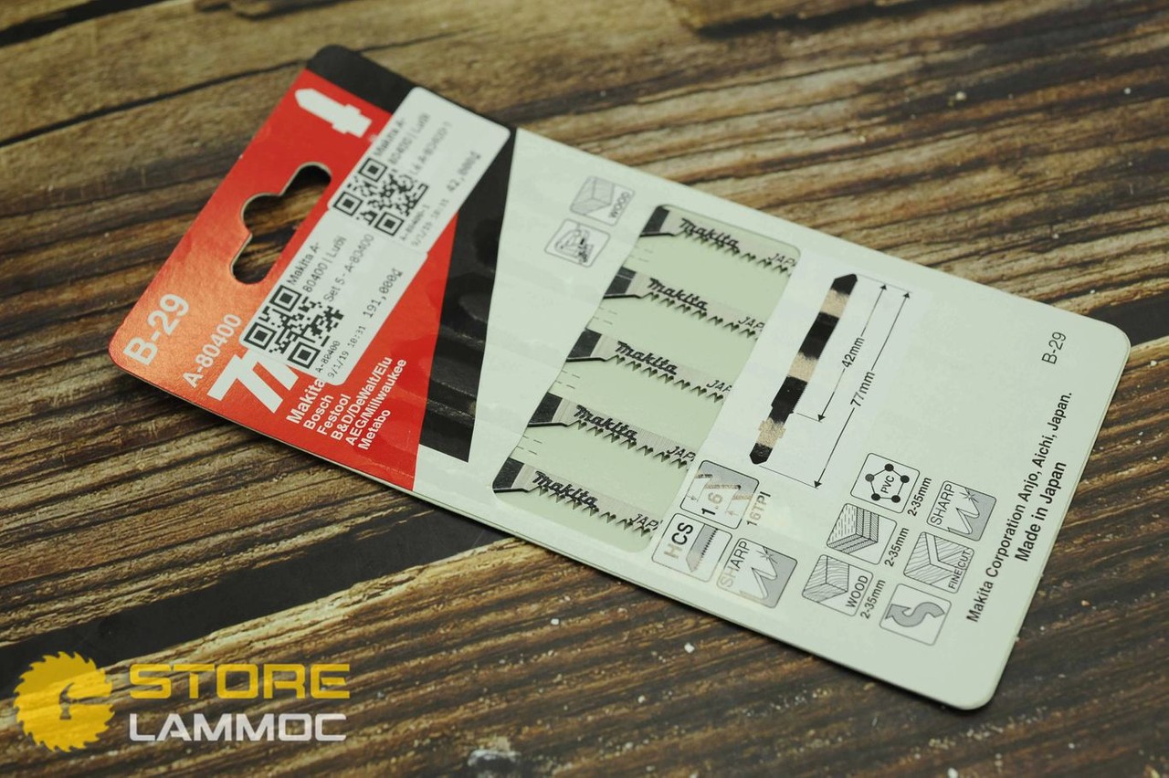 Lưỡi cưa lọng gỗ siêu lượn B-29 Makita A-80400 với chất liệu thép hợp kim cao cấp HCS, chiều dài toàn lưỡi cưa 77mm, chiều dài phần răng cưa 42mm, khả năng cắt từ 2-35mm và thích hợp cho đường cưa cong.