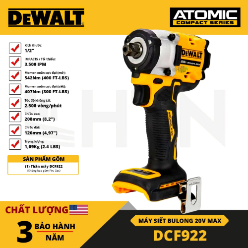Với công nghệ Atomic hàng đầu của Dewalt, máy bắn bu lông pin Dewalt DCF922N-B1 (Đầu bi) 20V là sự lựa chọn hoàn hảo cho các chuyên gia về công cụ dụng cụ cầm tay, thợ sửa chữa, thợ điện, kỹ thuật viên về cơ khí, nghệ nhân làm mộc và thợ làm đồ gỗ.