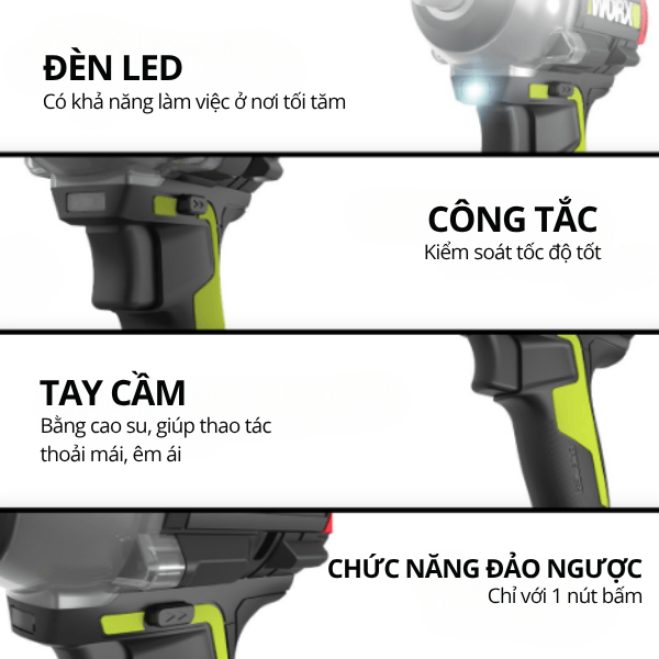 Máy bắn bu lông Worx WU289 là thiết bị không thể thiếu cho các công việc đòi hỏi lực siết lớn và độ chính xác cao. Với thiết kế nhỏ gọn, pin 20V mạnh mẽ cùng nhiều phiên bản đa dạng, sản phẩm đáp ứng mọi nhu cầu từ thợ cơ khí đến người dùng gia đình chuyên nghiệp. Đây là lựa chọn thông minh giúp bạn hoàn thành công việc nhanh chóng, an toàn và hiệu quả.