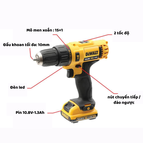 Máy khoan vặn vít pin 10.8V 1.3Ah DEWALT DCD716C2K-B1 là sản phẩm nhỏ gọn nhưng mạnh mẽ, có thương hiệu uy tín. Máy có thể đáp ứng những nhu cầu khoan và vặn vít nhỏ gọn trong các không gian hẹp, độ chính xác cao và cực kỳ tiện lợi.