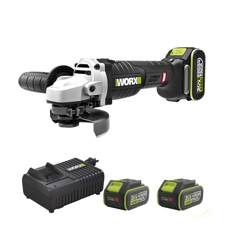 Máy mài góc 100mm pin 20V, 3 tốc độ Worx WU806 ( 2 pin 4.0Ah, 1 sạc 6Ah)