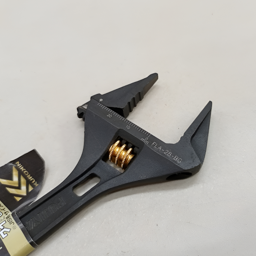 Sản phẩm mở lết cán díp điều chỉnh 1.1inch 28mm Kurokin Fujiya FLA-28-BG không chỉ hấp dẫn bởi hình dạng đặc biệt giúp bảo vệ bu lông khỏi hỏng mà còn bởi chất liệu cao cấp đạt tiêu chuẩn JIS, mở rộng hơn 10% so với tiêu chuẩn JIS chung.