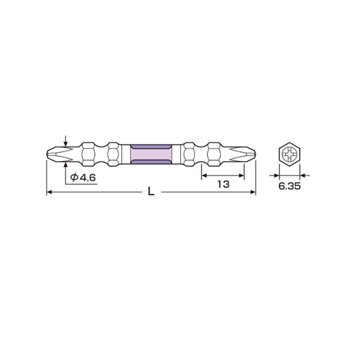 Đuôi lục giác có kích thước 6.35mm, phù hợp với các loại máy khoan và đầu vặn lục giác thông dụng