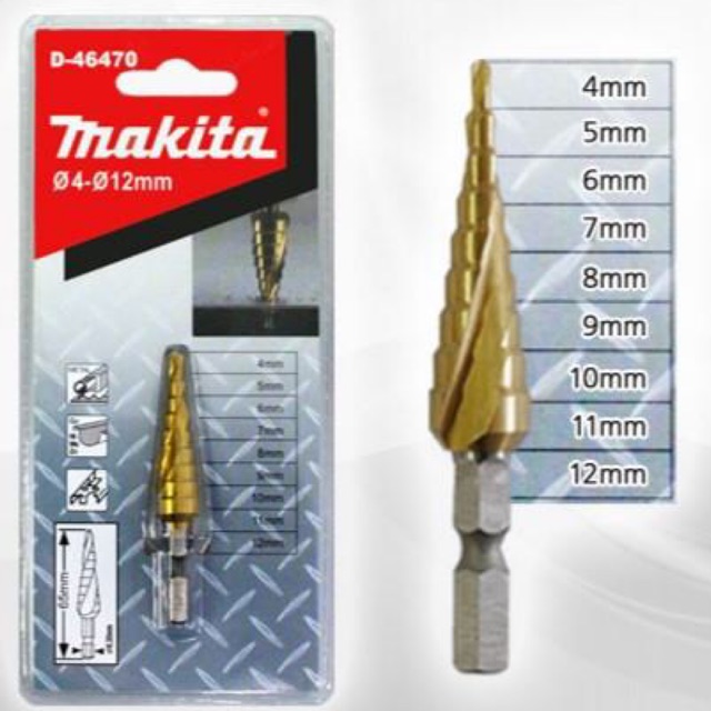 Mũi khoan bậc NZ 4-12mm Makita D-46470 là sản phẩm chất lượng cao giúp bạn khoan các loại vật liệu như gỗ, kim loại và đá một cách dễ dàng. Với thiết kế chắc chắn và độ bền cao, sản phẩm này sẽ là một công cụ hữu ích cho những công việc khoan của bạn.