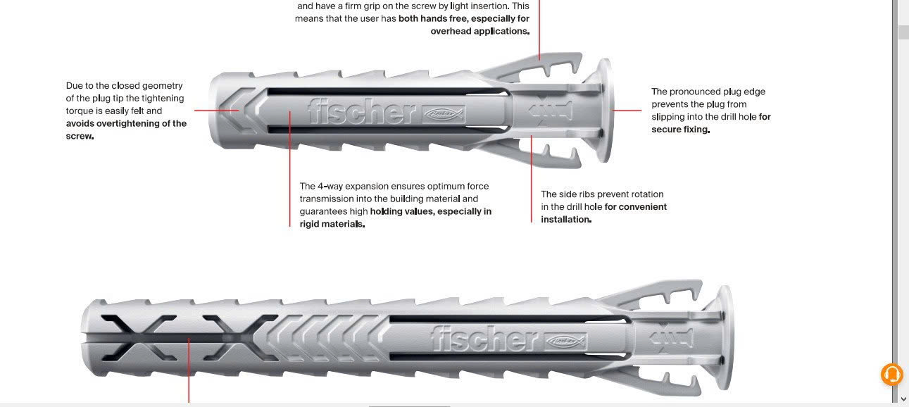 Tắc kê nhựa SX Fischer 6mm, 8mm, 10mm